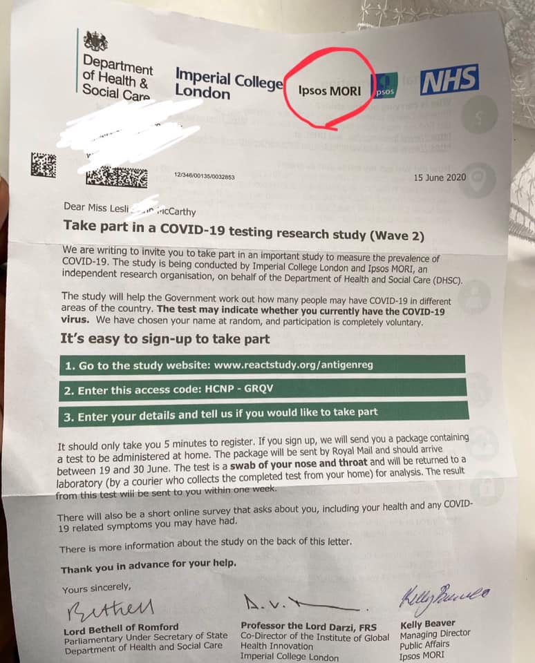 Vidíte ten nápis ,, IPSOS MORI,, - to je název firmy/společnosti na testování. Je to společnost ,,veřejného blaha a zdraví,,.