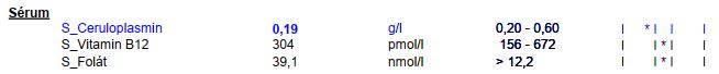 Sice bych potřeboval vidět ty ostatní testy nicméně i z tohoto lze něco vyčíst a to že poměr ceruloplazminu k mědi máte cca v pohodě tedy nemáte otravu volnou mědí, ale poměrně zásadní deficit, což může trvat i mnoho měsíců než se stav povede srovnat. Ideální by bylo ještě si vyšetřit minimálně retinol který patrně budete mít nízký a ten je pro dobrou tvorbu ceruloplazminu nezbytný a dále plné jaterní testy protože vše zpracovávají