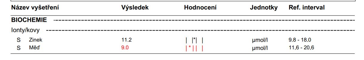 [quote="Jarda":1pgqvd4s]Sice bych potřeboval vidět ty ostatní testy nicméně i z tohoto lze něco vyčíst a to že poměr ceruloplazminu k mědi máte cca v pohodě tedy nemáte otravu volnou mědí, ale poměrně zásadní deficit, což může trvat i mnoho měsíců než se stav povede srovnat. Ideální by bylo ještě si vyšetřit minimálně retinol který patrně budete mít nízký a ten je pro dobrou tvorbu ceruloplazminu nezbytný a dále plné jaterní testy protože vše zpracovávají