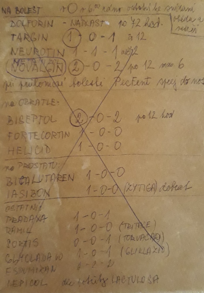 mám prosbu. Můj děda (83) skončil na invalidním vozíku, neboť se mu rozpadly poslední dva obratle v páteři - diagnóza: chronický zánět v páteři + zjištěná rakovina prostaty. Mimo jiné nemoci, tak děda bere týdně přes 200 prášků (ano, je to myslím něco kolem 220 přesněji). Opakované prosby, aby lépe dbal o své zdraví a začal se lépe stravovat, vyslyšel až nyní, protože přece jen, z té hromady prášků mu prostě není dobře - nyní otoky ve tváři, bolest všeho možného, modré dlaně???!?! Nedivil bych se, kdyby selhávaly ledviny a