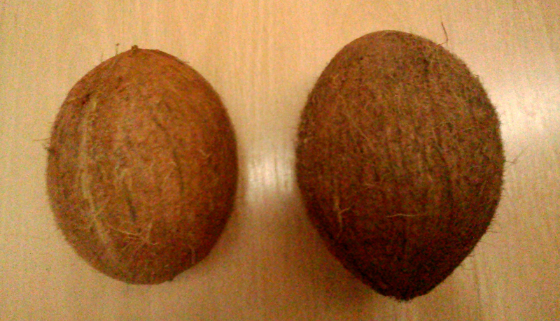 Pokud jde o kvalitu dodávaných kokosových ořechů, ta se může značně lišit druh od druhu a také podle stáří, tedy těžko radit pokud produkt před nákupem nevidíte. Asi bych se za daných okolností soustředil pouze na cenu, kupoval jsem je i za 10,-Kč/kus a dobré. Každopádně rozbíjení kladivem není nic moc, to máte zadělanou celou kuchyň, nebo i půl baráku pokud se tvrdý ořech po větším úderu rozletí. Ideální je špičkou tvrdého nože prodloubat jeden z těch tří bodů na vrchlíku, nechat vytéci mléko a pak ho přeseknout mačetou, kterou ale nemá většina lidí jako vybavení kuchyně, nebo rozříznout ve svěráku pilkou. Já jsem si je zde řezal na pásové pile, ale tu asi bude mít doma ještě méně lidí než mačetu. Pokud ořech přeříznete na dvě poloviny, velice dobře se krátkým tvrdým nožem dají z těch skořápkových misek vyloupávat naříznuté výseče dužiny, jde to poměrně rychle.