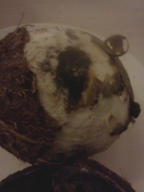 Co mě ale zklamalo je chuť bílé dužiny, kterou jsem očekával kokosově sladkou, zatím je to kombinace mírně sladké kokosové chuti, kde jsem vždy ale zaznamenal i mírně netypickou mýdlovou (zkaženou) chuť. A to u všech zatím zkonzumovaných kusů (u některých více a u některých méně). Bílou dužinu vždy rozkrojím na několik malých kousků. Vždy lze najít kousek, který má mírně zkaženou mýdlovou chuť.