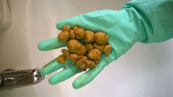- Nejprve vyloucite malinke kaminky, ktere jsou tezke a opravdu jako pisek, bezove barvy. Rika se, ze jsou z ledvin.Kdo chce, muze dat do zachodu sitko aby tyto kaminky zachytil, kdo nechce, pocka si na jaterni kameny, ktere jak uz popsano vyse, budou plavat na vode, zelene barvy, ruznych rozmeru a velikosti a jsou to cerstve kameny.