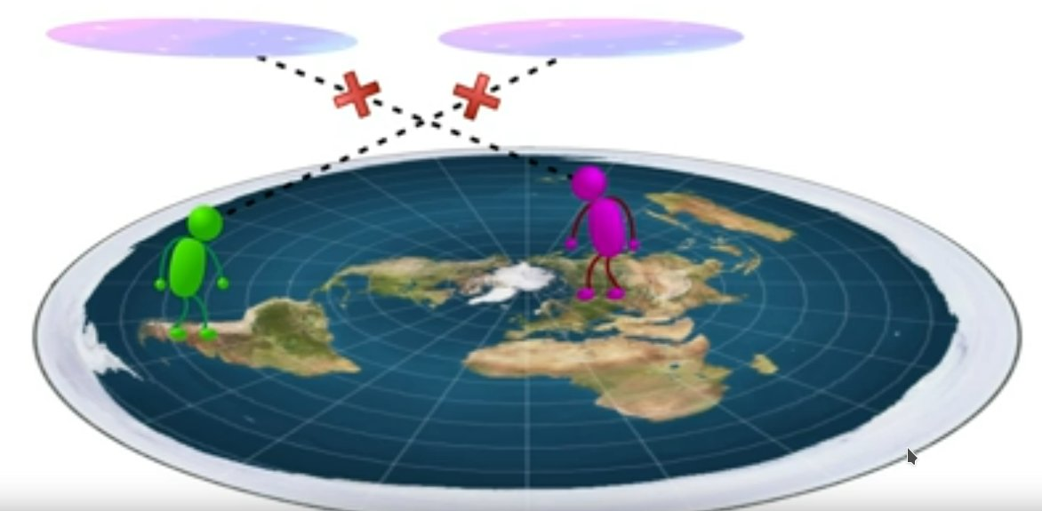Okrem dotazov na teba (viď. vyššie) ma zaujíma - vysvetli mi, ako je možné, že v Buenos Aires nevidia hviezdy, ktoré vidia povedzme v Mexiku, pokiaľ sme všetci na jednej doske. Tak si predstav, že si so mnou na lúke, pozrieme hore a ty vidíš iné hviezdy ako ja?? To je čo za kravina?? Veď na Zeme-doska nič nebráni tým v Argentíne, aby videli to, čo my tu a naopak. A prečo sa ľuďom v strede tvojej placky hviezdy otáčajú presne opačne ako tým v druhej polovici (po obvode) tvojej placky. Veď sú podľa teba všetci na jednej rovine preboha!!!