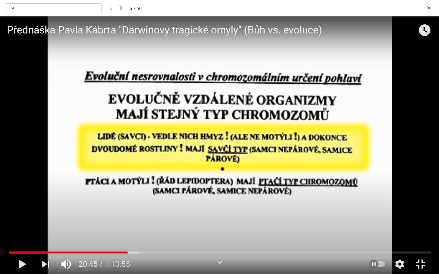 Česká prednáška na tému "Darwinove tragické omyly".
