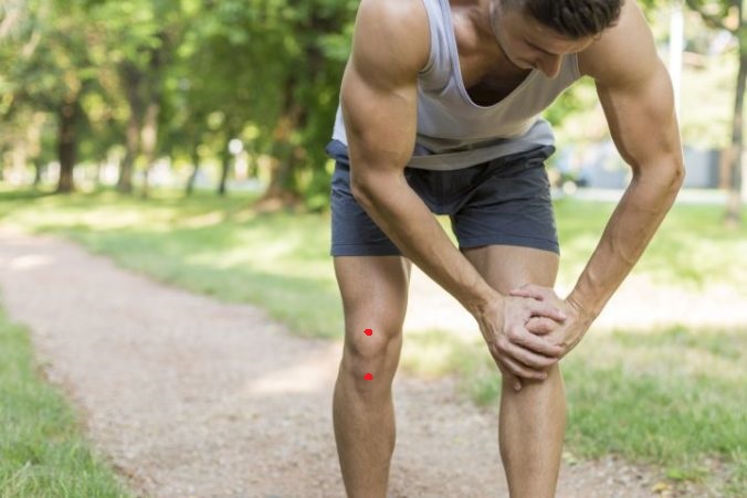 Kolená : Pridali sa aj kolená, tiež však nie každý deň, a na striedačku raz ľavé, raz pravé ... Bolia len pri špecifických polohách (trochu pokrčené koleno, čiže keď som v úplnom drepe, tak nebolia). Ortopéd ma poslal na RTG kolien. Podľa RTG mám kolená bez akejkoľvek degenerácie, vyzerajú vraj ukážkovo... Doporučil mi nejaké živiny na kĺby a šľachy (keďže proste cítim bolesť), ale na akú p*ču mi to je, keď pravidelne konzumujem vývar z kostí, kĺbov a koží, a posledný rok ho striedam (lebo nie vždy sa mi ho chce variť) s Gelorenom ? Koleno ma bolí vždy na povrchu, raz horná časť jabĺčka (pod predným stehnom), raz dolná (nad píšťalou) ... V niektorý deň ma bolí viac, v niektorý menej. Kolená posledné 4 roky zaťažujem len drepmi s vlastnou váhou a drepmi s 15kg kettlebellom. NIKDY nejdem "nadoraz", čiže som si kolená nijak nedodžubkal presilením. A denne som aspoň 15 minút v drepe - poloha, ktorú používajú "šikmookí" X hodín denne... Na obrázku som približné oblasti ktoré ma bolia vyznačil červenými bodkami.
