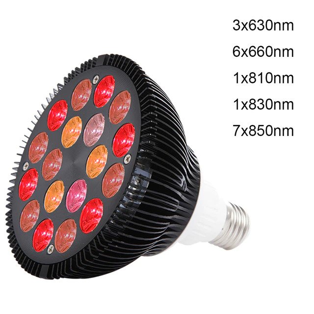 Objednal som som si nakoniec 54W LED "RED LIGHT" žiarovku/žiarivku za 33€ aj s poštovným, z Aliexpressu, ktorá má 5 typov lediek, teda 5 rôznych vlnových dĺžok červeného svetla...