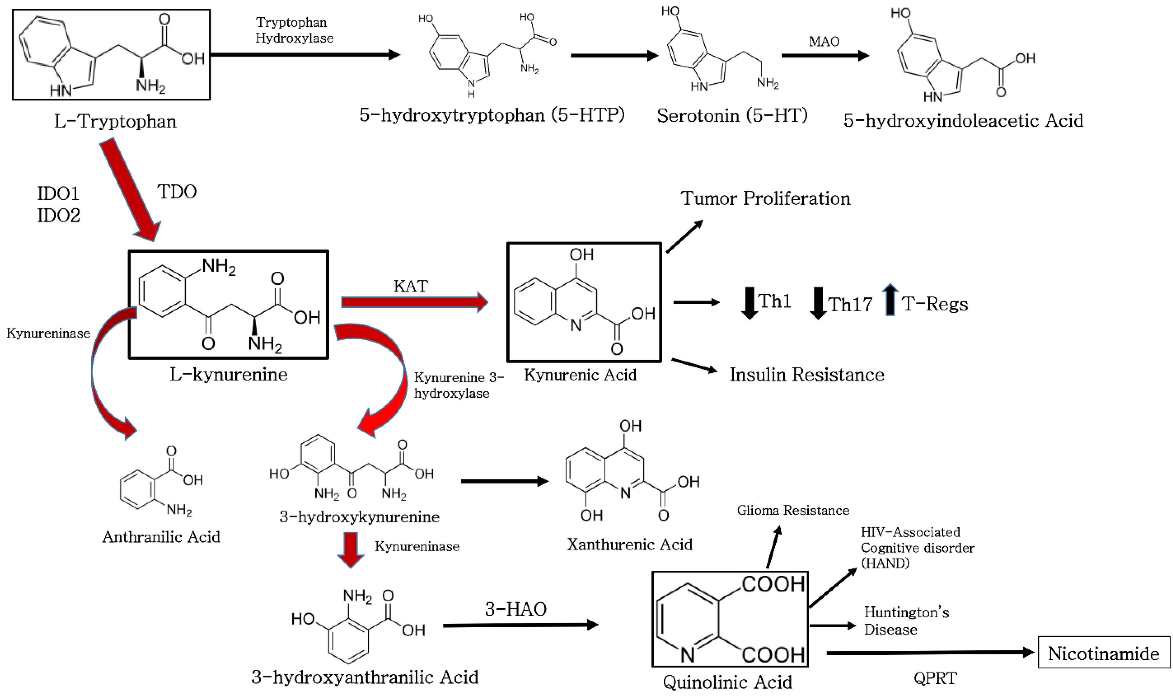 4) Low gluthatione increases inflammation which effects tryptophan break down by IDO enzyme. Since to support this new extra need for glutatione body is trying to recycle it and spends tons of b vitamins on it.