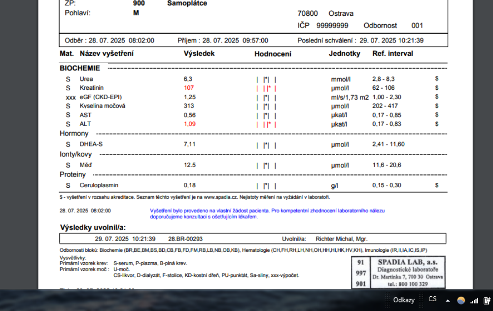 Ted prisel ten zbytek testu s medi. Vypocet volne medi 11,93 umol/l tak to je zase masakr. :shock:
