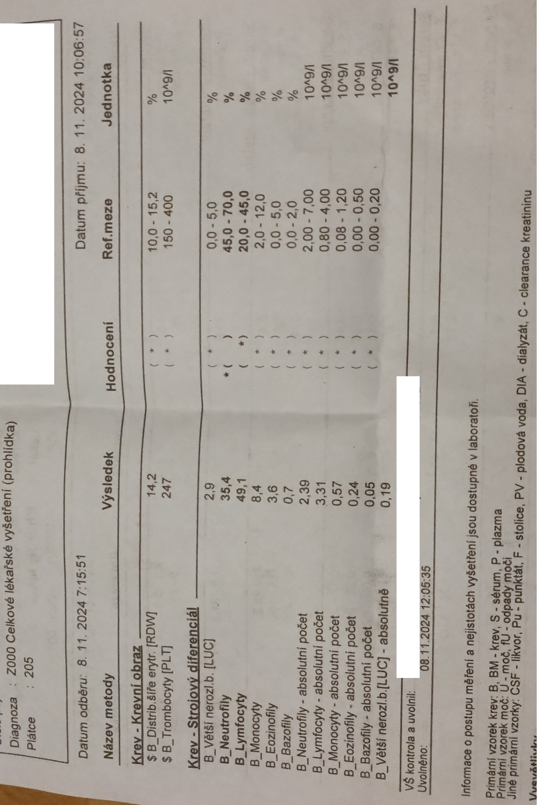 V zásadě lze souhlasit s tím co vám odpověděl člen pefi a jenom k tomu dodám takový postřeh. Kombinace zvýšených lymfocytů a snížených neutrofilů často ukazuje na probíhající nebo nedávnou virovou infekci, ale může být i známkou imunitního přetížení nebo reakce na nějakou léčbu. V některých případech to může být i přechodný stav po prodělané nemoci. Měl jste se k těm výsledkům více rozepsat jak vám odpověděl člen Ÿura takto jde o takové vaření z vody.