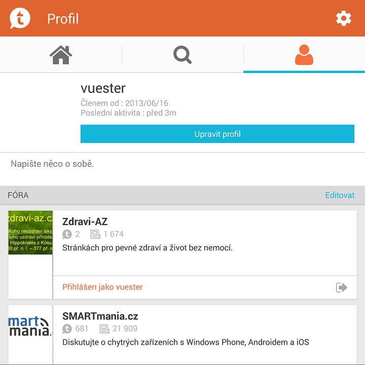 Posílám několik screenů z aplikace. Snad jediný překlep, který jsem zaregistroval, je popis fóra