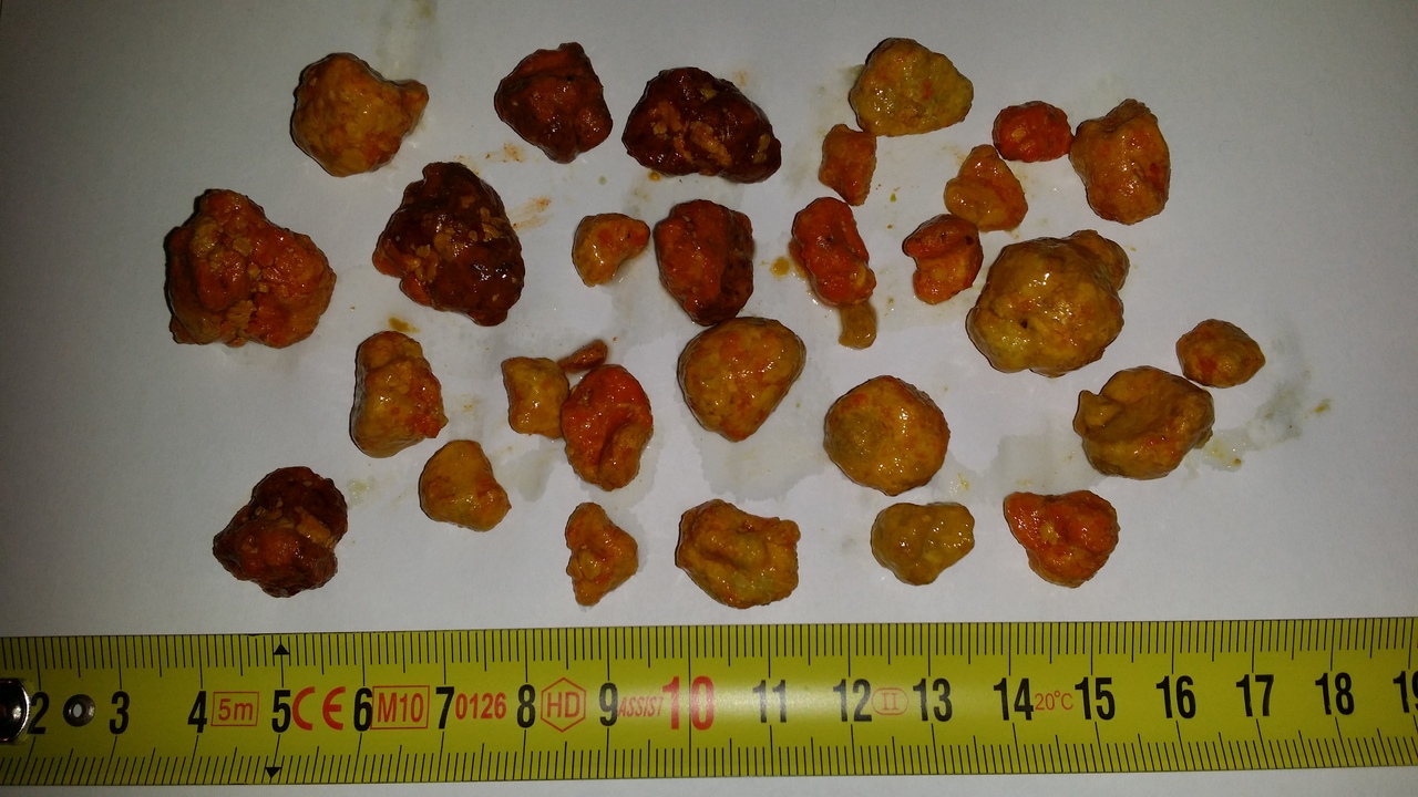 jaterní očistu jsem si zkusil na vlastní kůži a pro ostatní mohu jen doporučit. Pro nevěřící jsem udělal i fotku. Pro spekulanty zda jde o "sražený olej" jednoduše nesmysl! Mám osobní zkušenost, kdy mi cca 3cm kámen(y) cestují žlučovodem do dvanáctníku. Nebolestivé ale pocítitelné. To že by ústy pozřená olejová směs cestovala žaludkem - dvanáctníkem - žlučovodem do žlučníku (jater) tam se zformovala a pak zase cestovala zpět? To myslíte vážně?