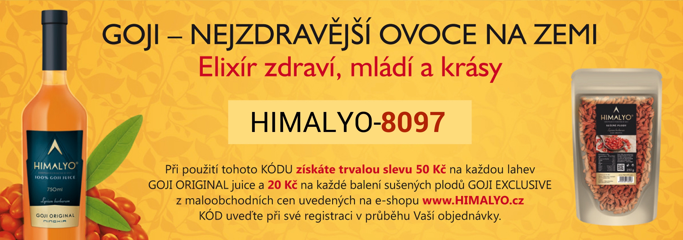 MAS PRAVDU. JE TO TAK. LEN BY SOM TI CHCEL PORADIT, DAJ SI RADSEJ STAVU Z GOJI, AKO SUSENE PLODY. MA AZ 100X VIAC VYZIVOVYCH HODNOT AKO SUSENE PLODY. GOJI HIMALYO JE Z OBLASTI NINXIA, KDE SA PESTUJE NAJKVALITNEJSIE GOJI NA SVETE. JE V BIO KVALITE. MAJU AJ SUSENE V BIO KVALITE. AK TI SUSENE CHUTI, TAK SI HO KLUDNE DAVAJ TIEZ, ALE SKUS TU STAVU A BUDES VELMI MILO PREKVAPENY. STAVA MA 500 X VIAC VITAMINU C AKO POMARANC A 80 X VIAC ANTIOXIDANTOV ORAC 60.000. NEZABUDNI NA STRANKE HIMALYO.CZ ZADAT ZLAVOVY KOD 8097 PRI REGISTRACII A MAS NA VEKY ZLAVU PRI KAZDOM NAKUPE 50,- KORUN NA KAZDU FLASU STAVY A 20,-KORUN NA KAZDY BALICEK SUSENYCH PLODOV.
