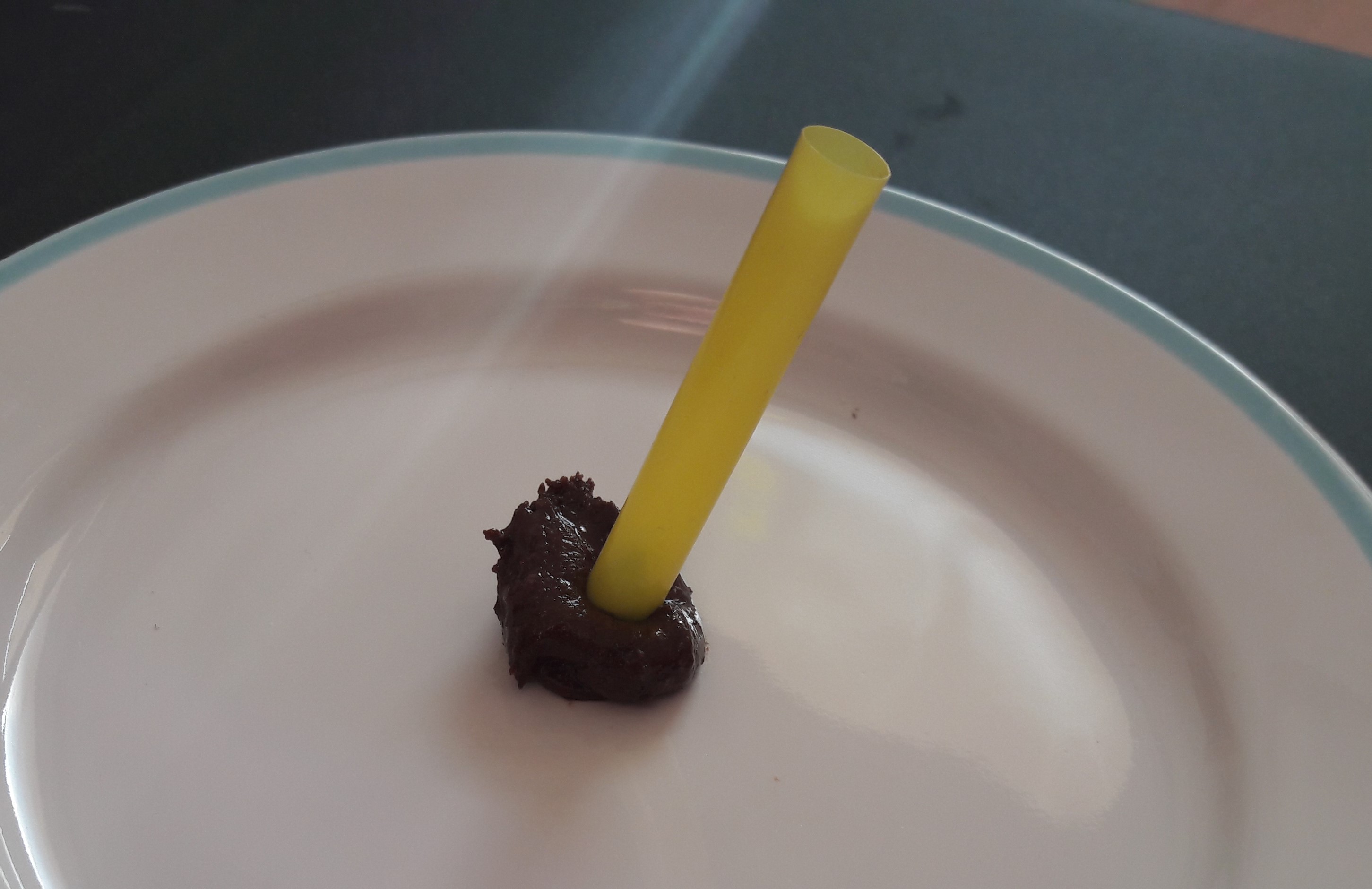 Slámku vložíme do poloviny kapsle a tyčinkou do ní vytlačíme vzorek stolice.
