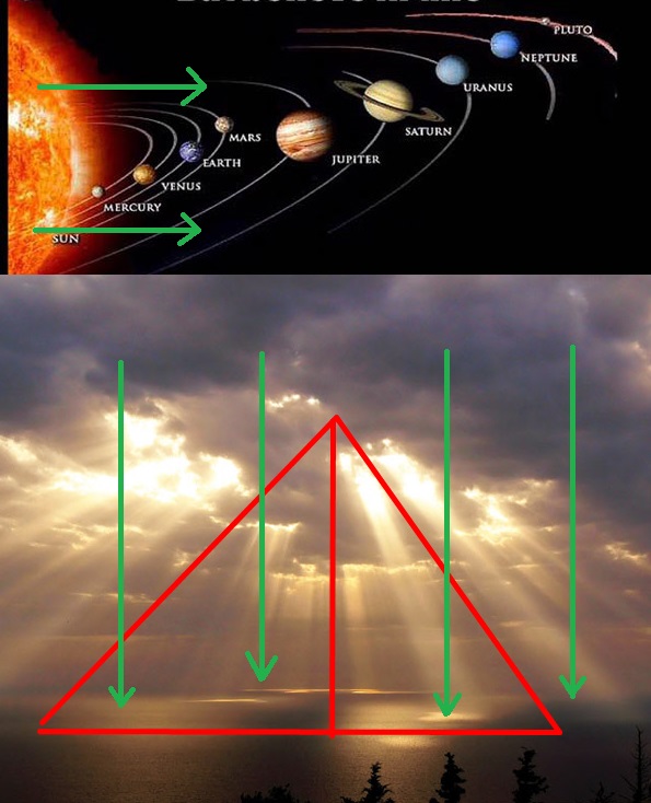 Určite ste už videli "šikmé" slnečné lúče.... AKO JE TO MOŽNÉ, KEĎ SLNKO JE NA PRIEMER VRAJ 80X VäČŠIE AKO ZEMEGUĽA, A JE TAK OHROMNE ĎALEKOOOOOOOO ??? ČI MI CHCETE POVEDAŤ, ŽE MRAKY LÁMU LÚČE SLNKA ? A KEBY STE NÁHODOU TEN BLUD NAPÍSALI, TAK EŠTE TAK KRÁSNE SYMETRICKY Z ĽAVEJ AJ PRAVEJ STRANY ?