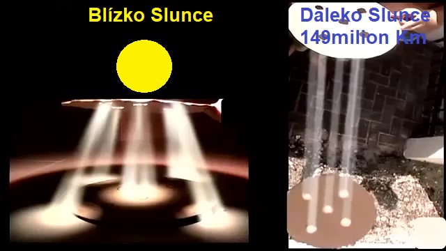 - to, že Slunce je větší koule než Země, ale jelikož je Slunce hodně daleko, tak toto lze velmi dobře zanedbat.