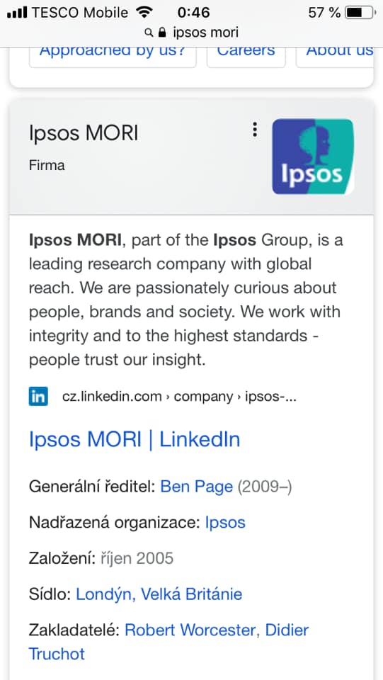 Vidíte ten nápis ,, IPSOS MORI,, - to je název firmy/společnosti na testování. Je to společnost ,,veřejného blaha a zdraví,,.